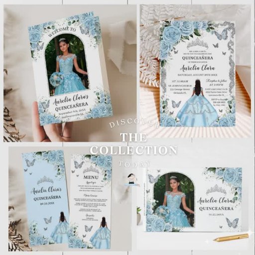 Sky Blue Floral Princess Gown Sweet 16 QUINCEAÑERA Save The Date