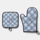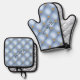 Sky Blue Gold Diamond Tufted Custom Name Oven Mitt & Pot Holder Set