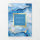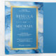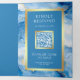 Sky Blue Gold Fluid Ink QR Code Wedding Tri-Fold Invitation