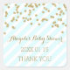 Baby shower thank you favour tag sticker in light pastel sky blue and white stripes pattern with gold colour confetti and handwritten style text. Customisable with your own text. The perfect way to decorate your baby shower favours and thank your guests for being a part of your special day.