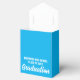 This modern custom senior graduation party favour box features the high school graduate name elegant gold on the cute sky blue background for the class of 2025. Customise with your high school, college, or university name and year for a great graduation keepsake for seniors.