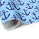 Sky Blue, Navy Blue Anchors Pattern Wrapping Paper