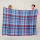 Sky Blue Navy Burgundy Preppy Madras Fleece Blanket