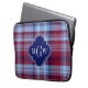 Sky Blue Navy Burgundy Preppy Madras Monogram Laptop Sleeve
