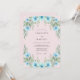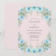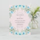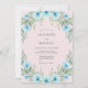 Delicate sky blue blossoms and soft green foliage create a whimsical border. This artistic design evokes a romantic and ethereal mood for a special occasion. The painterly style adds a touch of handcrafted elegance.