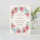 This design features a vibrant watercolor floral arrangement in red and soft sky blue. Lush roses and delicate foliage create an elegant atmosphere perfect for a springtime event. Small red berries add detail to the hand-painted botanical elements. The off-white backdrop enhances the airy, timeless feel of the artwork.
