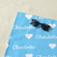 Sky Blue Personalised Name Pattern Beach Towel with Heart Design Summer Beach Bath Towel.