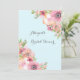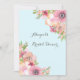 Personalised bridal shower invitations in light pastel sky blue and pretty rustic pink watercolor vintage flowers. Perfect for a spring or summer wedding showers.