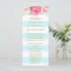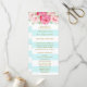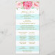 Custom wedding program in light pastel turquoise teal sky blue and white stripes pattern with vintage pink watercolor flowers. Customise these order of ceremony cards with your own text.