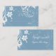 The text on these elegant light blue or sky blue and white vintage floral wedding or special event place or escort cards is fully customisable, or just leave it as it is. The size of the card is 3.5" x 2" and all that is required are some place card holders or just a table to display them. This sophisticated floral place card will work well for a variety of special occasions including weddings, anniversary parties, birthday parties, etc. Elegant blue and white works well for a wedding in the spring, summer, or winter. The floral has a vintage feel.