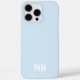 The design shows a minimal unique name initials monogram in white typography with sky blue background. If you purchase any model other than 16 pro max, then use "edit using design tool" button to adjust the placement of the text.
