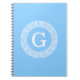 Sky Blue Wht Greek Key Rnd Frame Initial Monogram Notebook