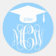 Sky Blue Wt Vine Script Monogram Graduation DIY BG Classic Round Sticker