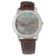 The watch looks really great! Very sharp and well done. The leather band is really nice, though for a man's watch I think it should be longer. Unfortunately, it isn't big enough for my husband's wrist but I will get a replacement because he is very excited to wear it!