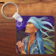 Aluminium keychain with stunning AI generated fantasy artwork features "The Sky Road Walker" a mystical Native American portrait of spirituality in fantastical colours.