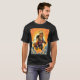 I give wanted to give this a 4 instead of a 5 because these Basic DARK T0shirts run unexpectedly SLIM or Narrow. Which is great if you do not have a potbelly, but I have a paunch. It isn't the shirt's fault that I've got a beer belly. The design and shirt itself is a quality cotton shirt. The color is more of a deep purple, but still a very pretty color. The Basic DARK T-shirts run a bit SLIMMER than the Basic Ts. The neck is a fraction narrower (or seems to be narrower) also. I'm a paunchy middle-aged woman and my neck is 12 inches (31cm) thick and the neckline fell about the same as in the photo of the man, and I had the desire to tug it a bit. So if you're a thick necked man or like loose shirts, be aware these are slimmer shirts. Once I get rid of my lockdown paunch it'll look great. The shirt washed well in cold water with no apparent bleeding. We don't have a dryer, so it hung dry. Did not shrink. Love the colors and the design. The design looks smaller on my shirt than it does on the model on-line. But still, it looks good on the shirt. The printing looks as it does on the model, just the size seems fractionally smaller. Washed garment in cold water, hung dry and design appeared unaffected.