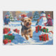 Skye Terrier Running in Snow with Christmas Hat Tea Towel