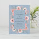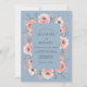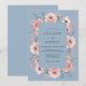 This watercolor design features a serene palette of slate blue and soft peach. Delicate pink anemones and roses create a lush floral arrangement that evokes a romantic spring atmosphere. Muted greenery and soft brushstrokes add an ethereal touch to the botanical artwork, capturing a timeless aesthetic.