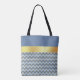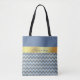 Slate Blue And Gold Chevron Pattern - Personalised Tote Bag