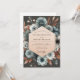 A rich tapestry of deep slate blue blossoms mingles with warm, earthy-toned foliage. This design evokes a mood of sophisticated romance and natural beauty, perfect for an autumnal celebration. Delicate floral clusters create an enchanting visual.