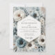 Delicate blooms in shades of slate blue and creamy white intertwine with muted greenery and subtle earthy accents. This design evokes a sense of serene romance, reminiscent of a watercolor painting. The artistic floral arrangement creates an elegant backdrop for any special occasion.