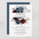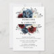 Slate Blue Burgundy White Ivory Floral Wedding Invitation