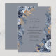 This design features a moody and elegant palette of slate blue, navy, and metallic bronze. Lush watercolor roses and peonies are paired with shimmering golden foliage to create a sophisticated winter atmosphere. The deep, muted background enhances the richness of the botanical elements for a timeless aesthetic.