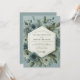Experience a serene and romantic atmosphere with this elegant botanical design. A sophisticated palette of dusty slate blue, soft sage, and deep teal creates a moody yet ethereal feel. Lush watercolor anemones and delicate cream blossoms are artfully arranged among sprays of verdant eucalyptus leaves.