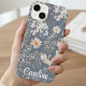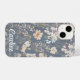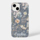 Protect your phone with the quiet elegance of this custom floral case. The design showcases a beautiful hand-painted botanical illustration on a serene slate blue backdrop. With a personalized name in flowing script, this case offers a tailored feel that makes it a thoughtful gift or a special treat for yourself. The sturdy accessory ensures your device stays safe while displaying a refined, nature-inspired look that remains stylish throughout the year. © Happy Ann Designs.