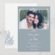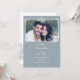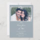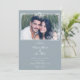 This dusty blue vintage ornate frame botanical photo wedding invitation sets a refined, romantic tone for your special day, blending timeless French country elegance with heartfelt personalization. Featuring a soft dusty blue background, a delicate white vintage ornate frame that gracefully encases your cherished couple portrait, and intricate botanical line-art accents—paired with elegant script calligraphy and understated serif typography—this design evokes nostalgic old-world charm while highlighting your unique love story.