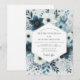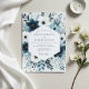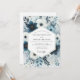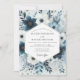 A dreamlike composition of delicate, frosty blooms in shades of slate blue and icy white. This ethereal design evokes a serene, winter wonderland atmosphere, perfect for a tranquil celebration. Hints of deep blue floral accents add depth and sophistication.
