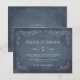 An elegant save the date with a dusty slate blue chalkboard background framed by a delicate grapevine and grape cluster border — ideal for winery, vineyard, or wine country weddings. The refined mixed typography in soft silver-white completes the sophisticated look. All names, date, venue, and website details are fully customisable.