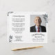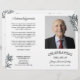 Greenery funeral program in white with greenery adorning the white pages. White and slate blue greenery funeral program personalised with a photo. Write obituary, order of service, and acknowledgements. Winter funeral service program with slate blue greenery and a photo of your loved one.