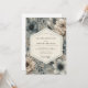 A deep, moody bloom design featuring lush florals in rich slate blue and muted cream tones. The artwork evokes a sense of romantic elegance with intricate botanical details. This striking palette creates a sophisticated and enchanting atmosphere for your special day.