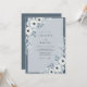 This design evokes a serene, artistic mood with delicate white anemones and flowing greenery in a soft slate blue palette. It brings a touch of ethereal elegance, perfect for a romantic occasion. The artwork features painterly floral arrangements.