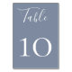 Chic solid slate blue table number card, designed to match our Slate Blue Peach Botanical Collection.