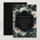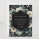 Embrace a dramatic and romantic atmosphere with this moody botanical design. A sophisticated palette of slate blue, pale cream, and deep green blossoms bursts from a dark, shadowy backdrop. Lush, painterly peonies and rich foliage create a sense of elegant, nocturnal beauty for your special union.