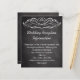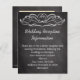 Slate chalkboard-look wedding matching set features dark charcoal grey background with slate blackboard effect, a winged heart motif, and white chalk handwritten drawing look writing in the foreground. Decorative swirl motif adds a touch of casual elegance. All Designs Copyright © www.CustomInvitesOnline.com
