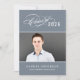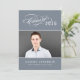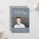 Celebrate your graduate with this elegant graduation party invitation featuring a flourished "Class of" calligraphy script with the year on a slate background alongside a senior portrait framed by thin line accents. The grey back features a beautiful "Celebrate" script headline with a second photo spot and all your party details. Fully customisable text on both sides.