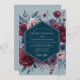 Embrace a mood of dramatic romance with this stunning artistic design. A captivating arrangement of lush burgundy peonies, deep crimson roses, and delicate berries emerges from a soft, slate blue background. The painterly composition and rich, somber palette create a sophisticated and unforgettable atmosphere for your special day.