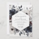 This design captures a moody and romantic aesthetic with its dramatic botanical composition. Painterly florals in deep slate blue, charcoal, and soft white are beautifully arranged with dusky foliage. Touches of dark burgundy add depth, creating a sophisticated and artistic look ideal for an elegant seasonal affair.