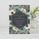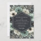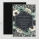 This romantic design evokes a moody, dramatic atmosphere perfect for an elegant union. A sophisticated color palette of dusty teal, slate, and charcoal is beautifully contrasted by soft ivory blossoms. The lush arrangement features painterly white anemones, abundant roses, and delicate, muted greenery.