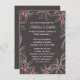 A symbol of love and kisses, hand sketched mistletoe leaves with red berries border the foliage themed invitation. The background is a modern slate grey. Personalise this whimsical engagement party invitation with your information, the back has space for more information if you need to provide other details such as directions or maps. These romantic invitations are great for a winter, Christmas, or holiday wedding.