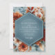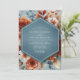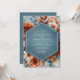 Evoke an artistic, romantic mood with this stunning painterly design. A beautiful arrangement of lush, full blossoms in rich shades of rust, terracotta, and burnt orange creates a warm and inviting feel. These vibrant flowers are set against a cool, dusty slate blue background with complementary foliage, offering a display of beautiful contrast for your special day.