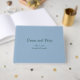 Express your faith in your relationship with this wedding guest book that declares you will be together through all eternity. This personalizable version allows you to input your own names and wedding date for the front, add intertwining monogram initials on the back if you so desire, and choose whatever text you like for the spine. The deep forest green colour really stands out against the soft slate blue backdrop.