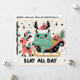 This adorable design features a fluffy, cheerful Santa riding in a reindeer sleigh with a playful expression, spreading holiday joy. The fun phrase "Slay All Day" adds a humourous twist, bringing a modern, lighthearted vibe to the classic Christmas theme. With its cute cartoon style and festive charm, this design is perfect for holiday cards, gift wrap, and decor, capturing the joyful spirit of the season in a playful and stylish way.
