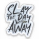 Embrace your inner boss with the "Slay the Day Away" sticker! This empowering design is perfect for anyone who’s ready to take on the world with confidence, style, and a positive mindset. Whether you’re conquering your to-do list, acing that test, or just living your best life, this sticker serves as a daily reminder to crush it, one moment at a time. Stick it on your laptop, water bottle, or planner to add a little extra motivation to your day—because when you slay, the day’s already yours!