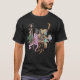 I give wanted to give this a 4 instead of a 5 because these Basic DARK T0shirts run unexpectedly SLIM or Narrow. Which is great if you do not have a potbelly, but I have a paunch. It isn't the shirt's fault that I've got a beer belly. The design and shirt itself is a quality cotton shirt. The color is more of a deep purple, but still a very pretty color. The Basic DARK T-shirts run a bit SLIMMER than the Basic Ts. The neck is a fraction narrower (or seems to be narrower) also. I'm a paunchy middle-aged woman and my neck is 12 inches (31cm) thick and the neckline fell about the same as in the photo of the man, and I had the desire to tug it a bit. So if you're a thick necked man or like loose shirts, be aware these are slimmer shirts. Once I get rid of my lockdown paunch it'll look great. The shirt washed well in cold water with no apparent bleeding. We don't have a dryer, so it hung dry. Did not shrink. Love the colors and the design. The design looks smaller on my shirt than it does on the model on-line. But still, it looks good on the shirt. The printing looks as it does on the model, just the size seems fractionally smaller. Washed garment in cold water, hung dry and design appeared unaffected.