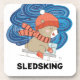 Cute animal on a sled illustration and the word Sledsking. Click personalise to change the word to a name or buy it as is.