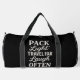 Elevate your adventures with this sleek black duffle bag featuring bold white typography that reads “Pack Light, Travel Far, Laugh Often.” Perfect for weekend getaways, gym sessions, or carry-on travel, this durable and spacious bag combines style and practicality. Its motivational message inspires wanderlust while the timeless black-and-white design makes it a versatile accessory for any traveller. Personalise or gift it to travel enthusiasts, fitness lovers, and anyone who values stylish organisation on the go.